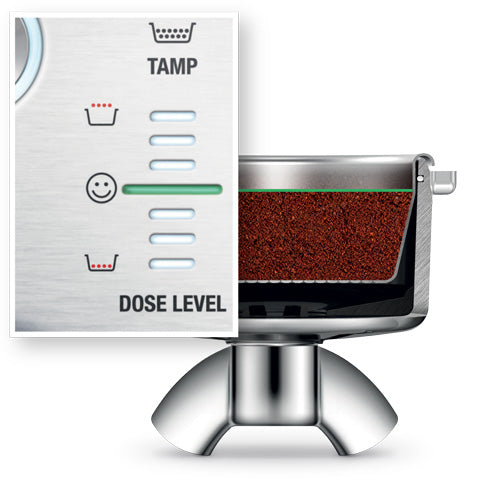 Tamping : Assisted tamping with 7˚ Barista Twist Finish, Dose Level Indicator & Feedback