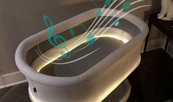 - Sounds include calming nature and womb sounds, guitar lullaby, and classical music.