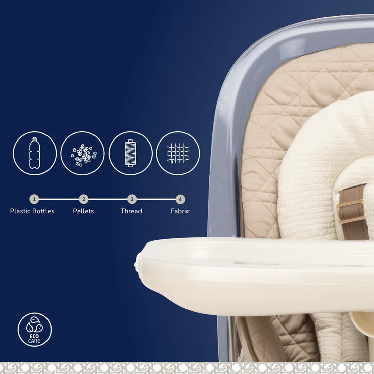 The 360° rotating seat allows you to turn your child’s position effortlessly with the touch of a button, stopping at every 90° for easy feeding and interaction. It also features 7 modes of use, a luxurious, easy-to-clean design, and premium EcoCare fabric for ultimate comfort.