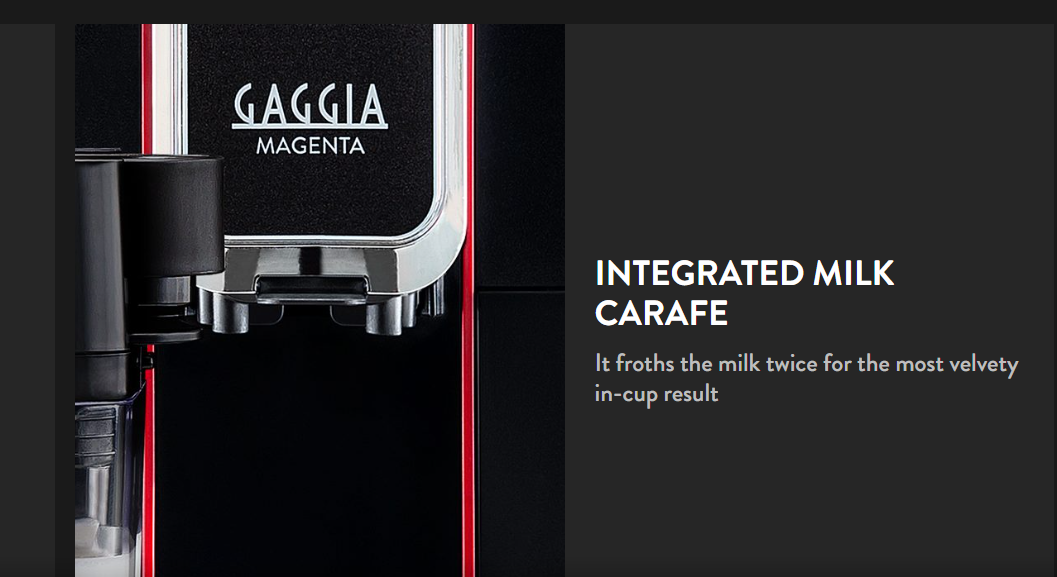 Removable components: Water tank (top), integrated milk carafe, coffee pucks container (side), drip tray (front), brew group (front), espresso tray