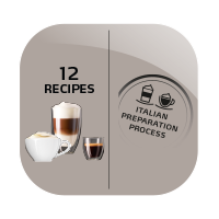 The four classic coffee options - espresso, café crème, cappuccino, and latte macchiato, are easily selected with a single touch on the real-image touch sensor buttons. You can also choose from eight other variations such as flat white, long black, and americano through the menu. The "Italian Preparation Process" ensures a particularly authentic taste by combining ingredients in the proper order, following the original Italian recipes. For example, in a latte macchiato, the espresso is added after the milk and milk froth, while for cappuccino, it’s the reverse.