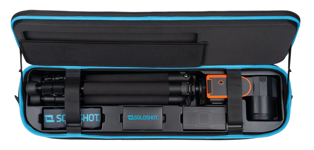 Your NEW SOLOSHOT3+ FULL BUNDLE ships inside a high quality EVA formed carrying case lined with memory foam with shoulder strap included.