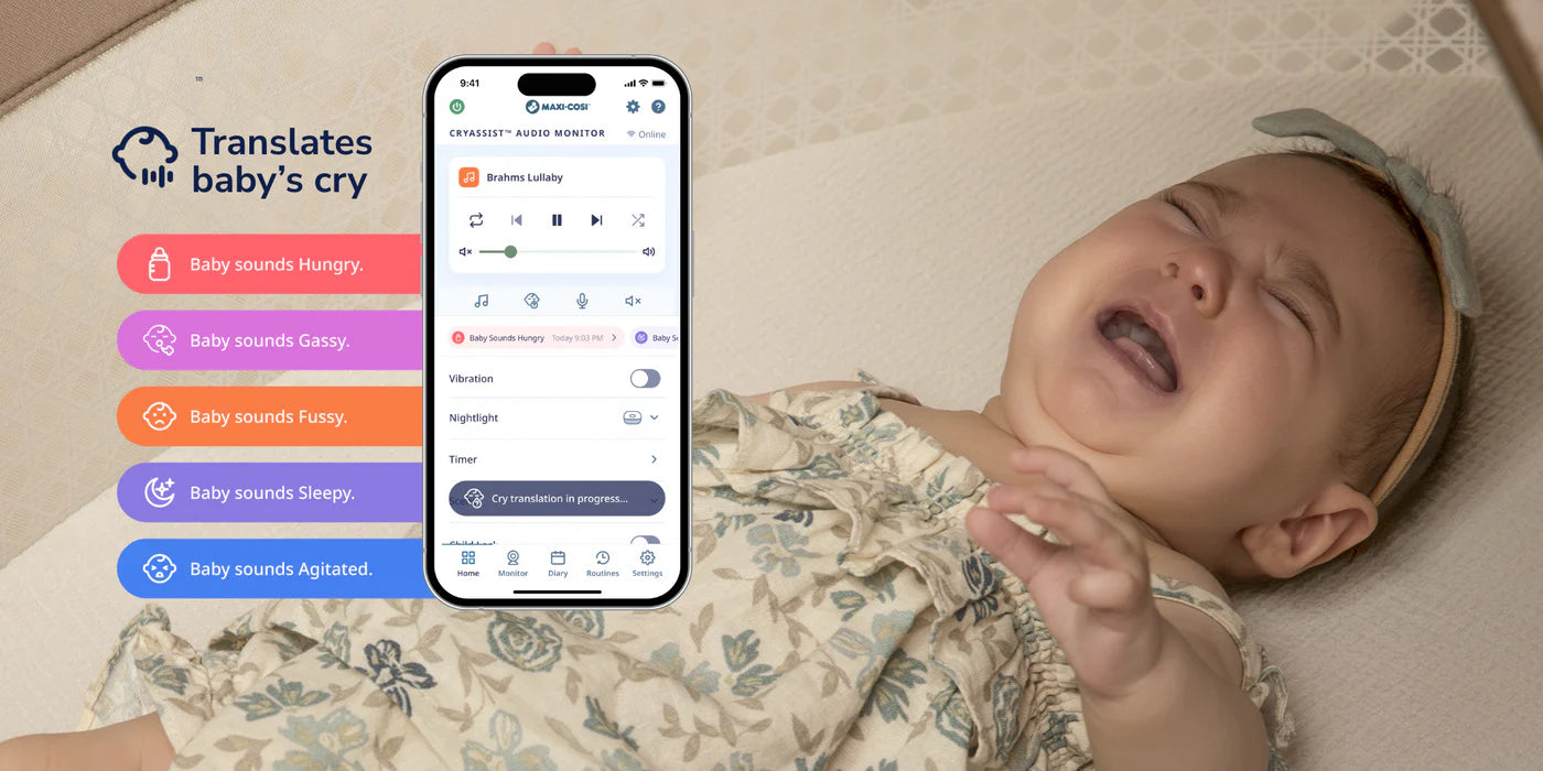 - CryAssist translates your little one’s cries with advanced AI so you’ll know if baby might be sleepy, fussy, gassy, agitated, or hungry (6 months of service included)