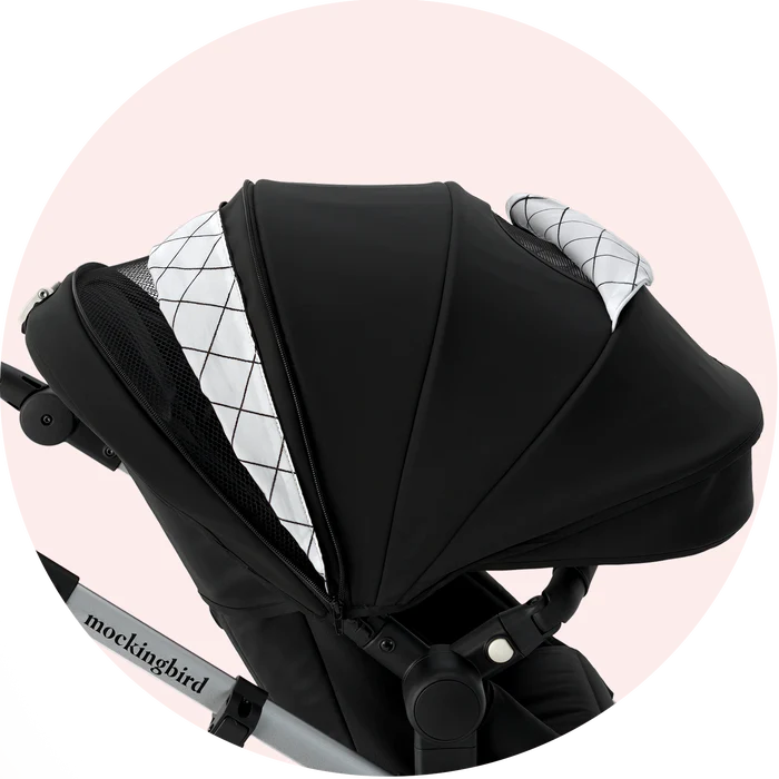 Every Mockingbird Stroller comes with a durable frame, a comfortable seat, sturdy wheels, a protective canopy, a child-friendly bumper bar, and an attachable sunshade.