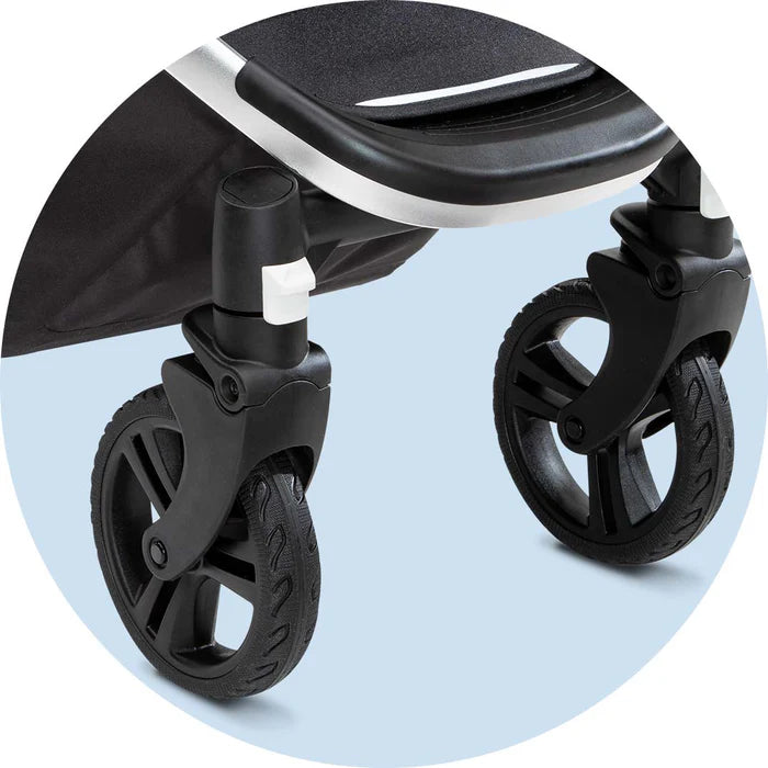 All-wheel suspension and shock-absorbing, never-flat tires ensure a smooth and comfortable ride, no matter the terrain. A one-step footbrake and front-locking wheels provide added stability and control. Plus, with our upgraded 2.0 stroller frame, every stroll feels effortlessly smooth.