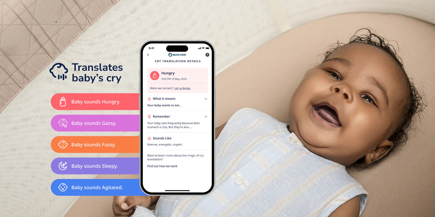 CryAssist™, powered by Zoundream, uses advanced AI to translate your baby's cries, helping you understand if they might be sleepy, fussy, gassy, agitated, or hungry. This feature helps parents respond confidently and is included with 6 months of service.
