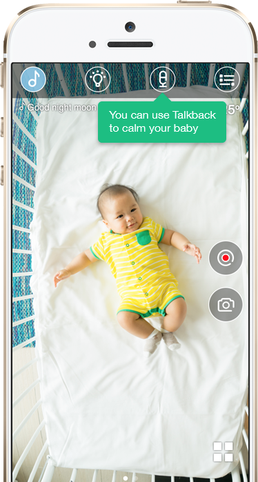 - Receive notifications when your baby cries, based on our patented cry detection technology